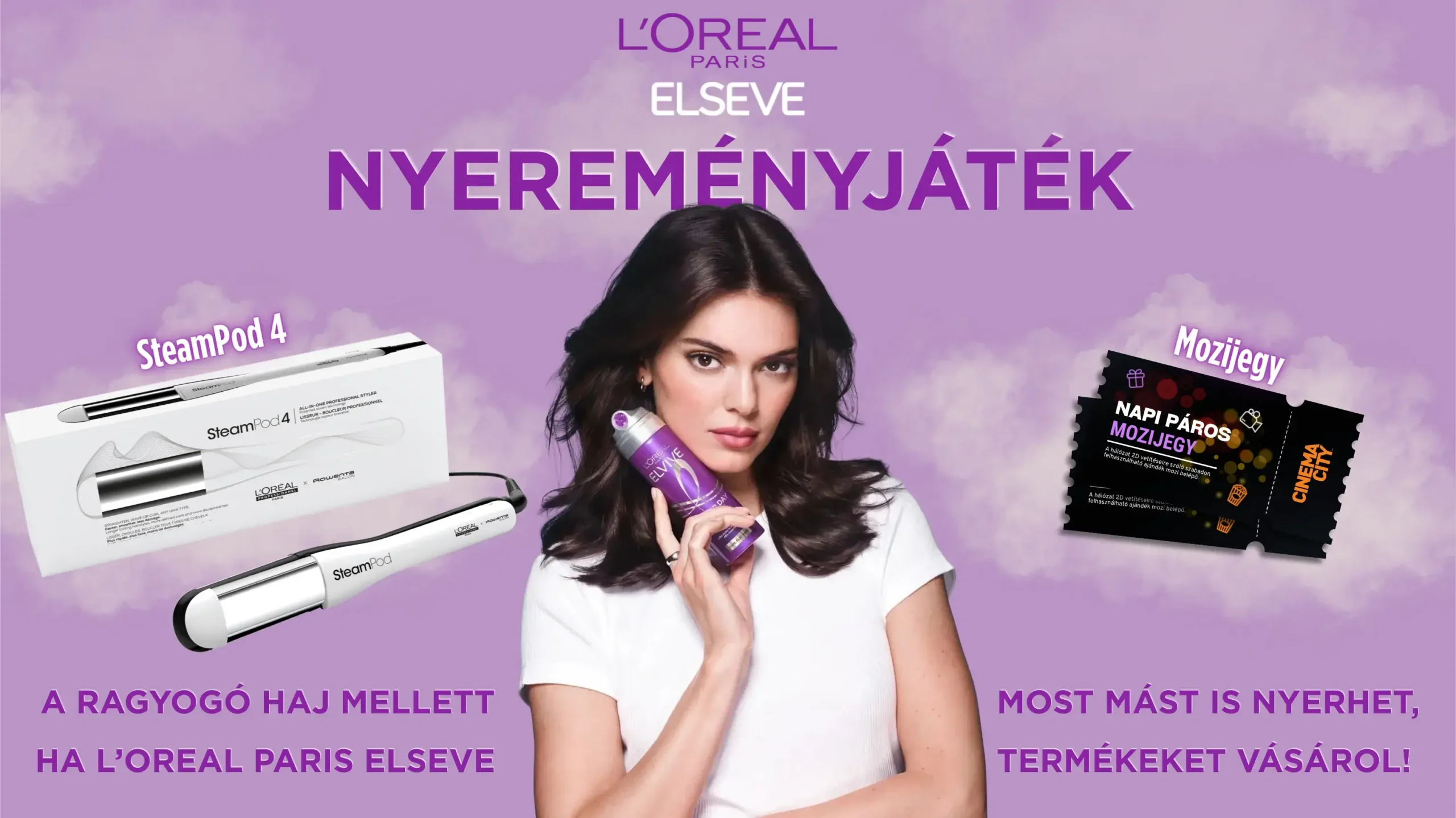 Ha Ön szalonminőségű frizurára vágyik, amit az otthona kényelmében készíthet el, akkor vásároljon legalább egy L’Oréal Elseve terméket a magyarországi DM üzletek valamelyikében és regisztrálja a vásárlást igazoló blokk AP kódját vagy online vásárlás esetén a megrendelés számát a szepuljteis.hu oldalon. Játsszon, hogy Öné lehessen A L’Oréal SteamPod 4.0 multifunkciós hajvasaló!
